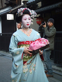 Much to Michelle's delight, our hostel was located in the Gion neighborhood, ground zero for Geisha in Kyoto, and by extension all of Japan. The girl at the hostel said that if we head down between 5:30 and 6:30 we could catch them on their way to work. We decided this would be fun, little did we know though that they have a paparazzi following and we joined right in with the gawking onlookers and photogs to snap pictures and admire the Geisha in all their splendor.