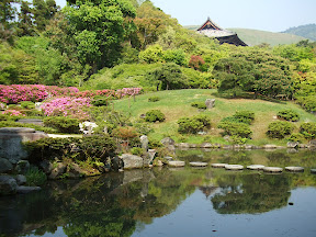 Our final stop for the day was the Ryoan ji Zen temple. This temple contains one of the finest Zen rock gardens around. It consists of raked gravel and 15 stones, and will be more easily viewed when I get a panorama picture up for you. Until then this can give you a bit of an idea.
