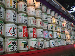 A curious site on the way out were these replica kegs of sake which were placed across the path from a number of barrels of French wine as some sort of cross cultural exchange with France, who knows, we liked the sake though.