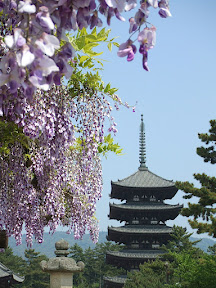 Here's another view of the pagoda, this time with some beautiful wisteria making an appearance.