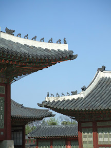 Another morning of sleeping in and then off to see the sights. The first palace we tried to visit was 5x the normal price this day because you can't take a guide, go figure, so we passed and chose to visit the Gyeongbokgung Palace instead. This was a former imperial palace, originally built in the late 14th century, but destroyed during Japanese invasions in the 16th century. This was the place where Sejong the Great held court in the 15th century and also invented the Hangul language of Korea so that (according to Joe) the common people could learn to read and write much easier than the complex Chinese script.