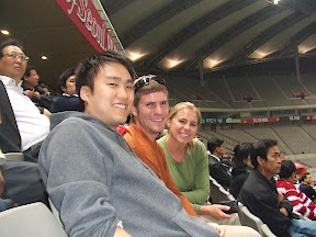 ...we found ourselves on the jumbotron. Michelle happened to be filming on the video camera at the time, but got a bit too excited and forgot her priorities, so we have some great footage of who knows what with all of screaming, "it's all on video" or something to that effect, in the background. In the end we had a blast, and our home town, Yakult Swallows prevailed 2-1, so everyone went home happy.