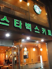After visiting the palace, we met up with Jooyoung to check out some art galleries. Then we had dinner with Jooyoung, her sister and Joe at another great Korean restaurant where we tried octopus. We walked around some more at Insa-Dong where they don't allow signage in any language other than Korean. So, here's the Starbucks...