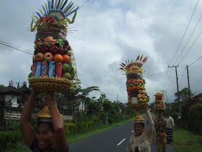 ...depending almost entirely on the financial standing of the village. When we walked around Ubud we saw some giant Ogoh-Ogoh's, while in the countryside they were more modest, but no less spectacular. We really wish we could get our pictures up for you to see, but in the mean time go to the link on the right and you will see at the end of Bali a couple of these creations.
